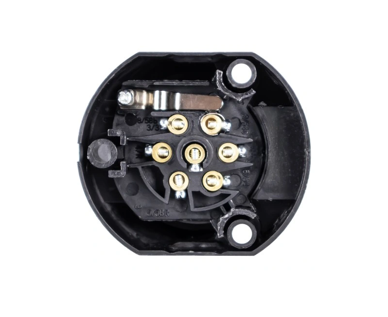 Megbízható, szabványos 7 tűs (7 PIN) utánfutó aljzat, amely biztosítja a vontató jármű és a pótkocsi közötti teljes elektromos összeköttetést. Ideális utánfutókhoz, autószállítókhoz, lakókocsikhoz és munkagépekhez.