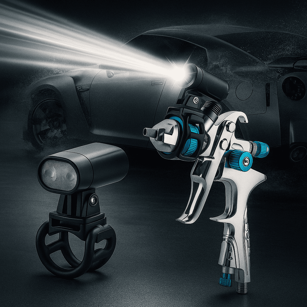 - Erős, állítható LED világítás (3fokozat) – segít látni a finom hibákat is festés előtt és közben Fényezőpisztoly LED Lámpa kerékpár LED Lámpa