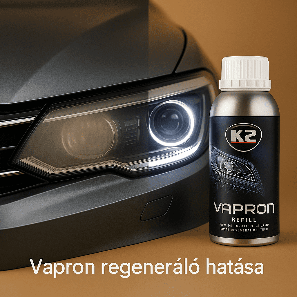 A K2 Vapron Pro egy speciális regeneráló folyadék, amelyet autólámpák felületének gyors és hatékony felújítására terveztek. Segítségével a mattá, sárgává vált fényszórók visszanyerik eredeti tisztaságukat és ragyogásukat, ezzel javítva a jármű megjelenését és láthatóságát.