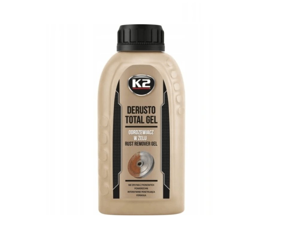 A K2 DERUSTO TOTAL GEL egy professzionális, gél állagú rozsdaoldó, amely nem folyik le a függőleges felületekről. Gyorsan és hatékonyan távolítja el a rozsdát minden típusú fémről. Vízzel hígítva alkalmas a csempék és szaniterek lerakódásainak eltávolítására is. A sok résszel rendelkező alkatrészekhez javasoljuk egy másik kiváló DERUSTO+ K2 sorozatú rozsdaoldó használatát, amely az egész alkatrész belemerítésével eltávolítja a rozsdát. Rozsdaeltávolító