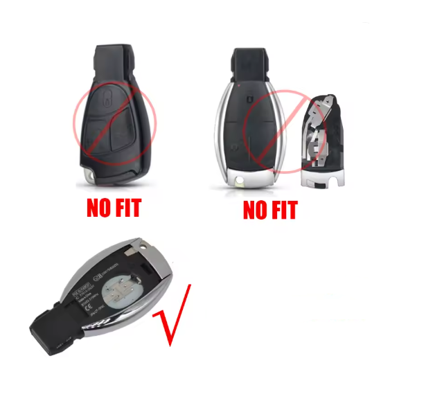 Utángyártott kulcsház Mercedes-Benz modellekhez. Tökéletes megoldás, ha a gyári kulcs burkolata elhasználódott vagy megsérült. A ház tartós ABS + fém anyagból készült, pontos illeszkedéssel. Mercedes-Benz 3 gombos kulcsház