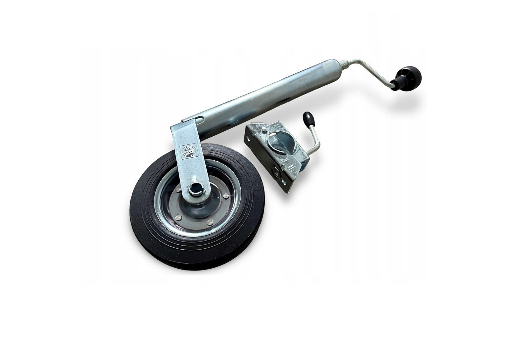 Német WINTERHOFF gyártmányú támasztókerék, amely megkönnyíti az utánfutók, autószállítók és lakókocsik mozgatását, valamint a vonófejről történő le- és felcsatolást.